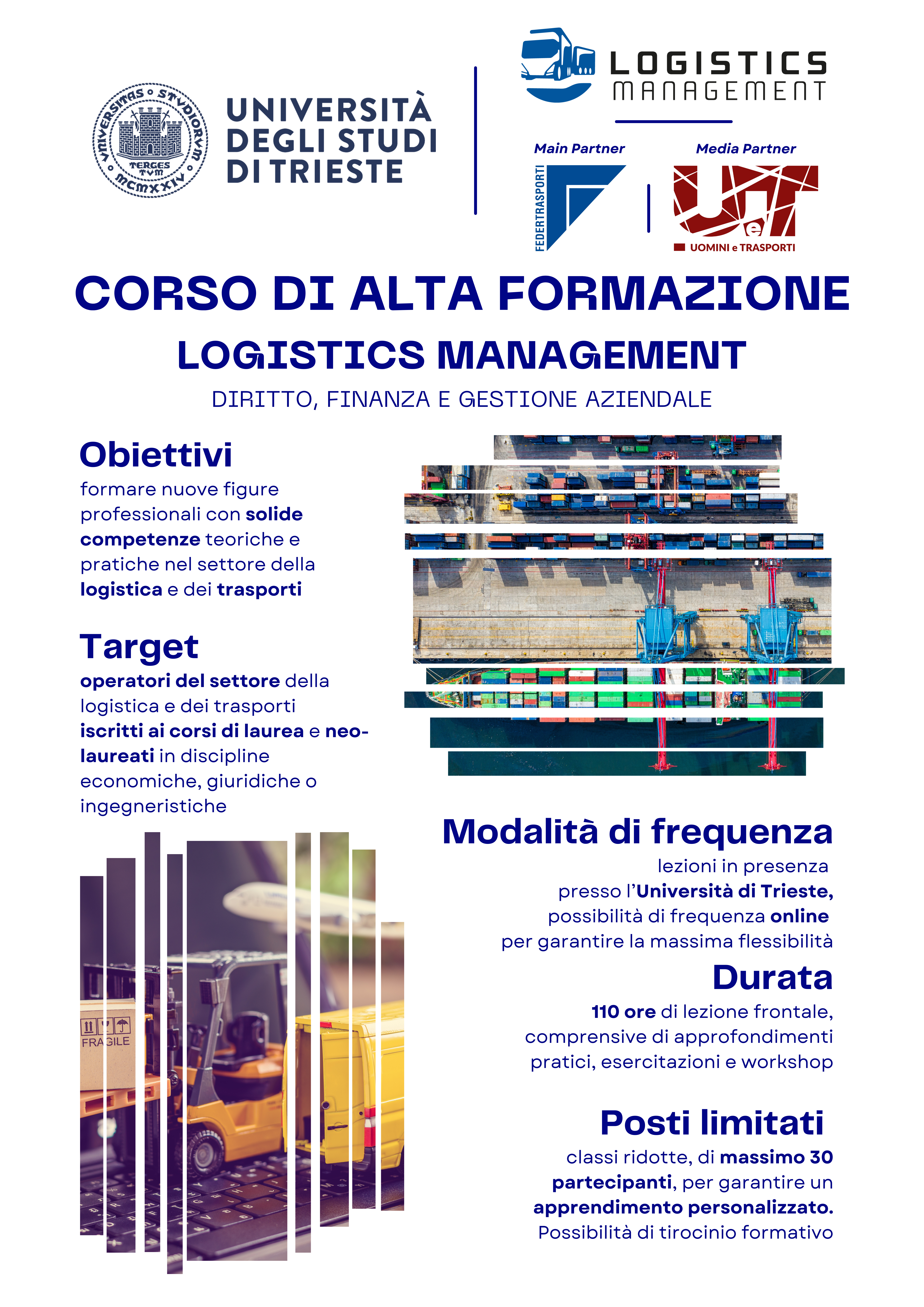 L’intento è quello di dare una risposta alla sempre più sentita esigenza delle imprese di trasporto merci e logistica di aggiornare ed ampliare la formazione dei propri dipendenti e di inserire all’interno della propria organizzazione nuove figure professionali che abbiano ricevuto un’adeguata formazione accademica e professionale e siano dotati di competenze tecniche e forti motivazioni di crescita.